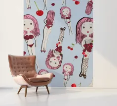 Ragazza ciliegia in vacanza per il disegno dell'asciugamano da spiaggia