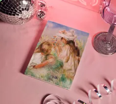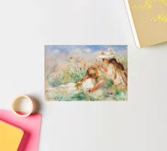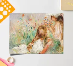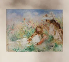 Ragazze nell'erba che sistemano un bouquet (Fillette couchée sur l'herbe) di Pierre-Auguste Renoir (pittore impressionista)