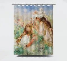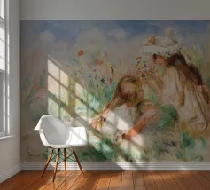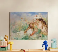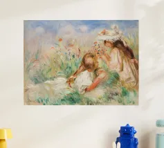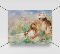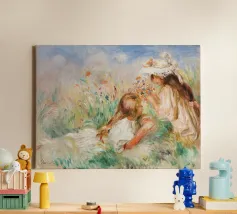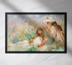 Stampe Renoir, Quadro Ragazze nell'erba, Arte impressionista Renoir, Scena pastorale francese, Arte del bouquet floreale Renoir, Impressionismo del XIX secolo, Ragazza nella natura Renoir