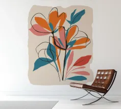 Un semplice ramoscello con fiori arancioni e foglie verdi è reso in uno stile morbido e pittorico su uno sfondo neutro, evocando un senso di calma e natura.
