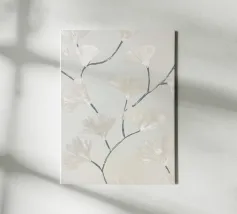 L'elegante illustrazione di foglie di ginkgo in colori pastello combina bellezza botanica e design minimalista, perfetto per una decorazione naturale armoniosa.