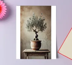 Pittura vintage di natura morta mediterranea: Una composizione senza tempo ispirata al fascino del Mediterraneo. Caratterizzato da un'armoniosa disposizione di rami d'ulivo, vasellame rustico e texture illuminate dal sole, questo pezzo evoca calore ed eleganza classica, perfetto per qualsiasi interno con un tocco di fascino antico.