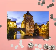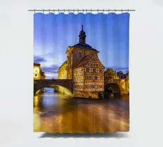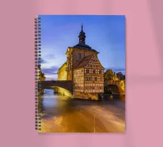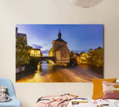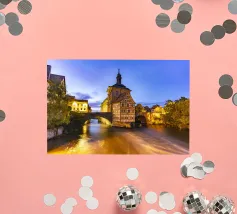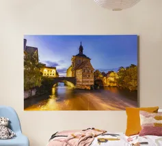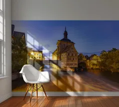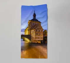 Il Municipio Vecchio al centro del fiume Regnitz al tramonto, centro storico di Bamberg, Alta Franconia, Baviera, Germania, Europa | Il Municipio Vecchio "Alte Rathaus" al centro del fiume Regnitz al tramonto, centro storico di Bamberg, Alta Franconia, Baviera, Germania, Europa
