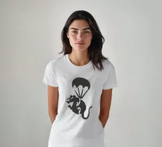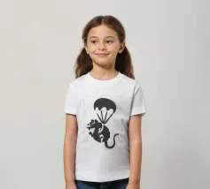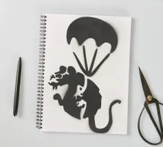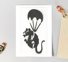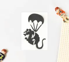 Questo stencil di Banksy raffigura uno dei suoi ratti, l'animale che considera il simbolo urbano per eccellenza della resilienza. Il ratto, che scende con il paracadute, suggerisce una sensazione di discesa forzata o di arrivo inaspettato nel paesaggio urbano. È un commento cinico e allo stesso tempo giocoso sulla sopravvivenza degli emarginati nella società.