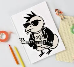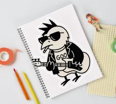 Mostrate il vostro lato ribelle con questo adesivo unico che raffigura un corvo punk con chitarra elettrica e occhiali scuri. Ideale per personalizzare il vostro computer, la vostra bottiglia d'acqua o il vostro notebook, questo corvo alla moda aggiunge un tocco rock'n'roll e stravagante a tutti i vostri oggetti e piacerà ai fan dell'originalità e della musica alternativa.