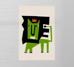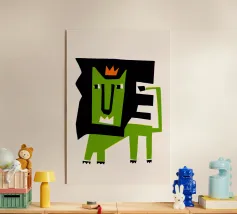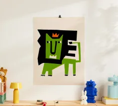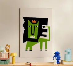 Questa semplice e audace illustrazione di un leone è un'ottima aggiunta alla stanza o alla cameretta di qualsiasi bambino. Con colori vivaci e forme giocose, dona un tocco di allegria allo spazio. Perfetto per i bambini che amano i disegni di animali divertenti. Disponibile in diverse dimensioni.