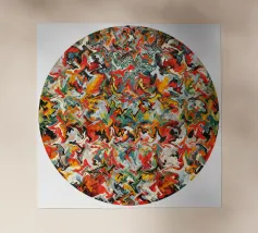 Ispirato alla psichedelia degli anni '60, al surrealismo e alla fluidità delle lampade di lava, crea un effetto disorientante e ipnotico, perfetto per album art, immagini di festival o decorazioni murali stravolgenti. Ispirato al simbolismo spirituale, questo pezzo funziona ugualmente bene come arte da parete, stampa tessile o risorsa di design digitale, offrendo un tocco moderno all'antica armonia geometrica. Stampa artistica con motivi decorativi colorati. Poster d'arte mandala simmetrico multicolore. Vibrazioni artistiche spirituali e gioiose. Buone vibrazioni e colori amorevoli. Disegno geometrico astratto, composizione moderna e vibrante che gioca con la simmetria e il minimalismo.