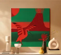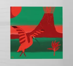 Parte della collezione "Paraiso" (Paradiso). A volte è meglio partire prima. L'ispirazione per questo lavoro è stata l'ibis scarlatto, abitante delle zone costiere del Sud America. La collezione "Paraiso" è una riflessione colorata sulla transitorietà. Come in tutti i miei lavori, i tropici e la loro fauna, flora e colori sono una grande fonte di ispirazione. Le singole opere combinano temi riconoscibili come l'evasione e la negazione con prospettive gioiose.