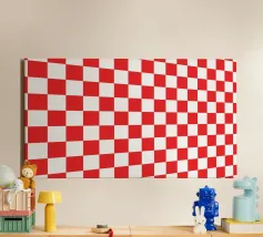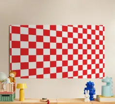 Si tratta di un'immagine dell'identico sfondo della bandiera croata con un riquadro quadrato rosso, abbinato a una vista prospettica unica, che rende l'opera d'arte più interessante.