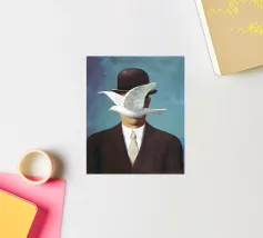 René Magritte - Uomo con la bombetta: esempio lampante dello stile surrealista di Magritte, l'Uomo con la bombetta presenta una figura misteriosa e senza volto in abiti formali, che simboleggia l'anonimato, l'identità e la tensione tra l'ordinario e lo straordinario. L'uso di linee pulite e di immagini oniriche da parte di Magritte rende quest'opera d'arte un capolavoro duraturo del Surrealismo del XX secolo. Disponibile come stampa o poster, questo pezzo aggiunge intrigo, raffinatezza e stile di conversazione a qualsiasi casa, ufficio o parete della galleria. Perfetto per i collezionisti, gli amanti dell'arte moderna e i fan del surrealismo.