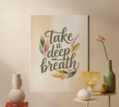 Un'opera d'arte calda e attenta che invita a fermarsi e a respirare. Questo disegno scritto a mano, arricchito da delicate foglie acquerellate, è perfetto per creare un angolo di pace in casa, in ufficio o nello spazio di meditazione.