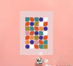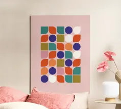 Un disegno astratto geometrico audace e giocoso, caratterizzato da un mix di cerchi, quadrati e forme curve in una vivace tavolozza di ispirazione rétro. La composizione equilibrata e i toni caldi lo rendono un'aggiunta elegante agli interni moderni, all'arredamento di metà secolo e alle pareti colorate delle gallerie. Perfetto per chi ama i motivi astratti e l'estetica geometrica senza tempo. Progettato da showmemars