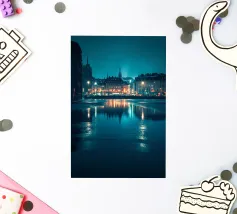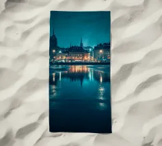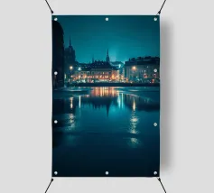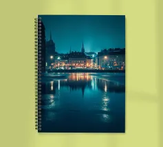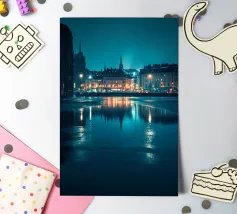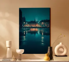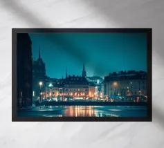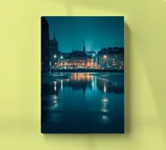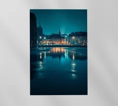 Ammirate la magia di Stoccolma di notte, con i suoi riflessi scintillanti e l'atmosfera incantevole. Una foto che emana eleganza e invita all'evasione.