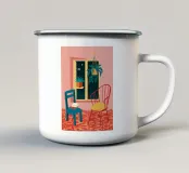 Una persona siede su una sedia di legno in un'accogliente stanza rosa, guardando fuori dalla finestra il cielo notturno. La scena è pacifica e introspettiva, con una pianta appesa che aggiunge un tocco di natura alla calma dell'ambiente interno.