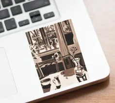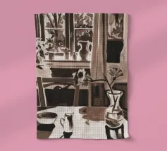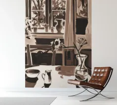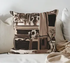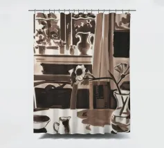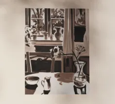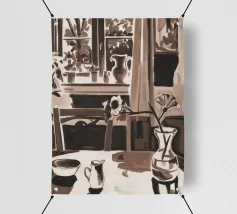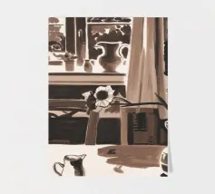 Realizzata in una calda monocromia, questa scena interna di vasi e tende ombreggiate parla di nostalgia, memoria e tempo dimenticato.