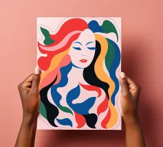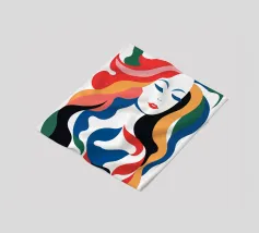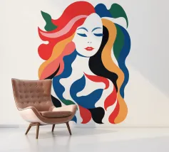 Questo colorato ritratto astratto di una bella donna non riguarda tanto la donna, quanto le forme e i colori dinamici. Questi diffondono ottimismo, pensiero positivo e gioia di vivere. Provatelo con questo design.