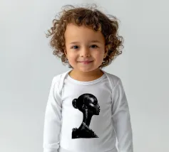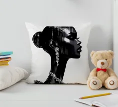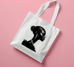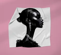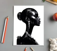 ARTE A INCHIOSTRO NERO E ACRILICO DEL PROFILO DI UNA MODELLA DI MODA.