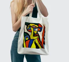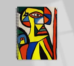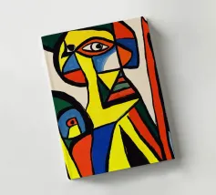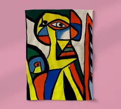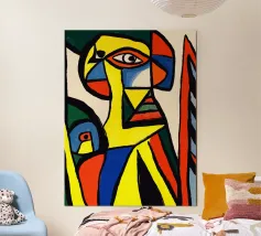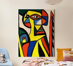 Colori vivaci e linee decise formano una rappresentazione astratta di un volto dallo stile frammentato e geometrico. La composizione giustappone varie tonalità e forme per creare quello che sembra essere un occhio, un naso e altri tratti del viso in modo non tradizionale.