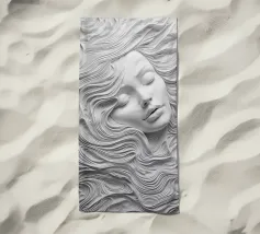Questo capolavoro scultoreo fonde l'arte marmorea del Bernini con la perfezione digitale. Il volto pacifico emerge dalle onde vorticose dei capelli, un'interpretazione moderna delle dinamiche barocche del movimento. La tavolozza monocromatica esalta l'aura meditativa e ricorda l'arte contemporanea in rilievo 3D. Un pezzo forte per ambienti sofisticati e chiari, che unisce la bellezza classica all'estetica futuristica.