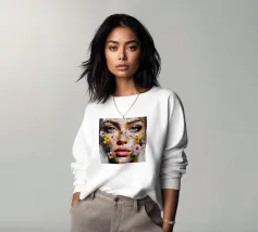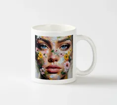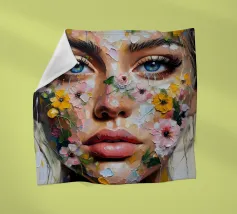 Ritratto di bella donna con fiori di campo e petali sul viso.