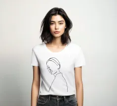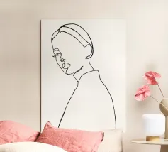 Questo ritratto artistico in bianco e nero affascina per la sua semplicità ed eleganza. Le linee curve formano un volto moderno ed elegante che irradia calma ed espressività. Perfetto come murale, tazza o cuscino, questo disegno dona un sottile tocco artistico a qualsiasi casa. Ideale per gli amanti del minimalismo e dell'arte contemporanea, questo motivo si adatta a qualsiasi interno e conferisce agli ambienti un'estetica moderna.