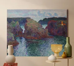 Un paesaggio marino drammatico e suggestivo di Claude Monet, che cattura la bellezza selvaggia delle coste frastagliate della Bretagna. Questo capolavoro del 1886 mostra il caratteristico stile impressionista di Monet: pennellate vivaci, luce dinamica e una sorprendente tavolozza dai toni freddi.