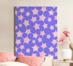Un motivo giocoso di stelle rosa testurizzate sparse su un audace sfondo viola. Il disegno fonde un tema cosmico con un morbido tocco pastello, creando un'estetica sognante ma vibrante. Perfetto per aggiungere un'atmosfera celestiale divertente e moderna a qualsiasi spazio.