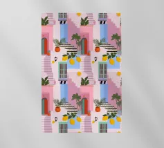 Un'allegra natura morta in riva al mare: un'aragosta luminosa su un piatto a fantasia, una fetta di limone e un bicchiere di rosé accanto a tenui fiori. È un'immagine fresca, moderna e un po' glam, che cattura la sensazione di una cena in riva al mare all'ora d'oro in una scena giocosa.