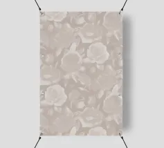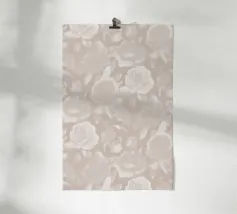 Grazioso motivo floreale con rose fiorite color crema, su sfondo beige neutro.