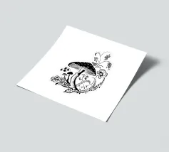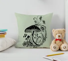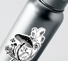 Il motivo mostra un'illustrazione in bianco e nero di un rospo. Il rospo è costituito da un cappello liscio leggermente curvato verso il basso e da un gambo stretto e diritto. Lo stile ricorda le illustrazioni botaniche o le rappresentazioni schematiche delle illustrazioni scientifiche. Non sono stati inseriti sfondi o dettagli aggiuntivi, il che attira l'attenzione sulla chiara rappresentazione del fungo.