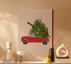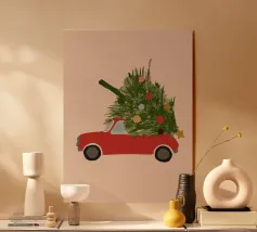 L'auto di Natale rossa con l'albero di Natale sul tetto su sfondo beige è una grande decorazione natalizia che irradia calore, accoglienza e allegria. Perfetta per chi vuole rallegrare la propria casa o è alla ricerca di una dolce immagine da regalare. Adatto anche come accogliente maglione per Natale e come maglione di gruppo per fantastiche foto natalizie. Personalizzatelo con il vostro nome o con una bella frase natalizia!