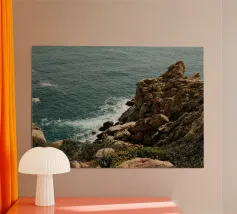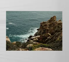 La cruda bellezza dell'oceano incontra le scogliere selvagge in questa splendida scena costiera. Le onde blu intenso si infrangono contro le rocce frastagliate, mentre la vegetazione rigogliosa aggiunge un tocco di colore al paesaggio aspro. Un momento perfetto in cui la potenza e la tranquillità della natura si intrecciano.