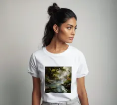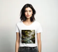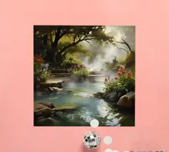 Questa è una melodia tranquilla della natura. L'acqua cristallina scorre tra le rocce ricoperte di muschio, serpeggiando tra le chiome degli alberi verdeggianti, creando un paesaggio tranquillo e poetico. I raggi del sole filtrano attraverso le foglie, disegnando scintillanti riflessi sull'acqua, come una danza di luci e ombre. Il quadro evoca una sensazione di relax, tranquillità e nostalgia per una campagna tranquilla, dove l'anima viene purificata e trova la pace.
