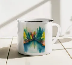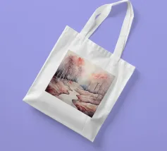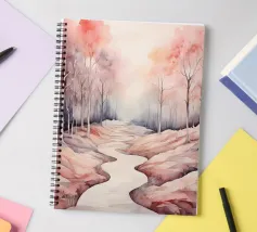 Un acquerello pacifico che raffigura un ruscello tortuoso che scorre in una foresta serena. Le morbide tonalità del rosa e del viola creano un'atmosfera tranquilla, invitando lo spettatore a immaginare un momento di quieta contemplazione.