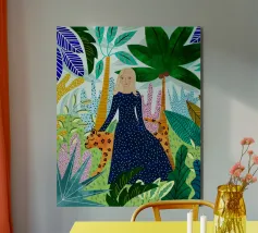 Jungle Cheetah Wildlife Nature Landscape Bohemian Woman people fashion vibrant eclectic forest botanical plants painting watercolor