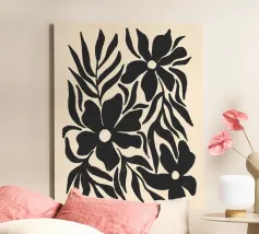 Un'elegante stampa minimalista che presenta sagome strutturate di fiori e rami delicati su un morbido sfondo neutro. Questa opera d'arte botanica conferisce un'atmosfera moderna e organica a qualsiasi spazio, perfetta per aggiungere un tocco sottile ma artistico a interni contemporanei, scandinavi o a tema naturale.