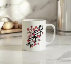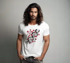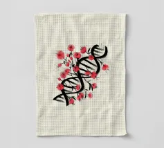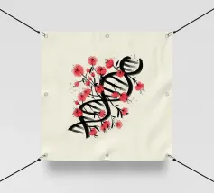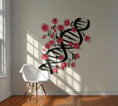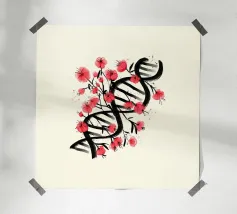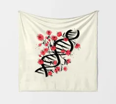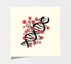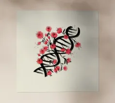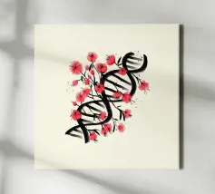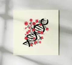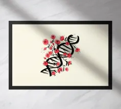 Una molecola di DNA ornata di fiori di ciliegio, dipinta in stile giapponese. Un'arte che unisce cultura giapponese e scienza. Questo dipinto è il regalo perfetto per chi ama la scienza.