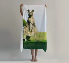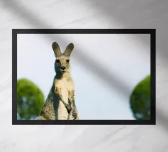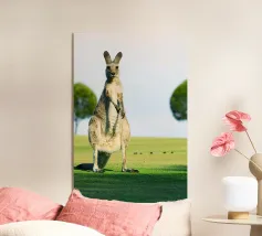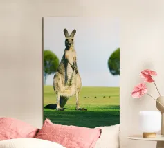 Il canguro in piedi sull'erba sembrava così tranquillo. Il suo corpo robusto e la sua liscia pelliccia marrone risaltavano sotto la luce del sole. Le sue orecchie erano all'erta, i suoi occhi neri e rotondi scintillavano, intelligenti e curiosi. Le sue forti zampe posteriori si sostenevano a terra, mentre la lunga e robusta coda teneva il corpo in equilibrio. Tutt'intorno, l'erba verde si estendeva all'infinito; alcune leggere brezze soffiavano, facendo ondeggiare l'erba, creando una scena naturale pacifica e vivace al tempo stesso.