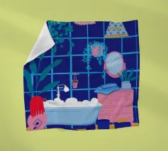 Una persona si gode un momento di estremo relax, immersa in una vasca piena di bollicine in un bagno ornato da splendide piastrelle blu decorative.