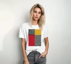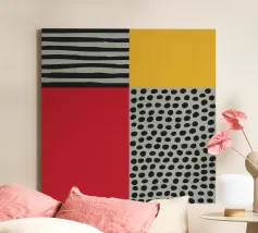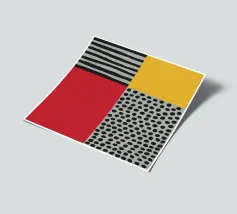 Design nordico scandinavo. Questo design combina la chiarezza scandinava con l'astrazione moderna. Forme chiare e geometriche incontrano una palette di colori vivaci come il rosso, il blu e l'arancione, creando un gioco armonioso di struttura e dinamismo. Minimalista ma espressivo, aggiunge un tocco artistico e contemporaneo a qualsiasi ambiente o prodotto.