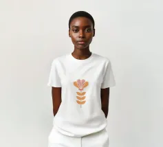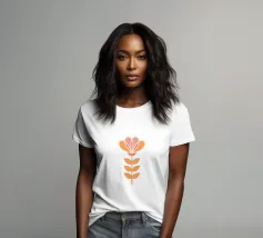 Questo fiore stilizzato combina forme di cuore giocose con un'eleganza simmetrica nei delicati colori pesca, rosa e crema. Ricorda le illustrazioni di ispirazione retrò con un tocco moderno e dona calore, armonia e stile boho chic a qualsiasi ambiente. Ideale per pareti di gallerie, stanze di bambini, angoli creativi o come poster digitale.