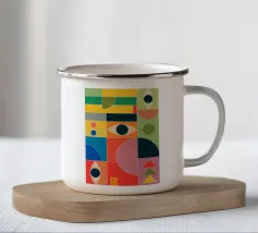 Un motivo vivace e intricato che ricorda una trapunta, composto da vari quadrati con simboli e disegni geometrici ispirati all'arte popolare. La ricca tavolozza di colori crea un'atmosfera calda e artigianale.