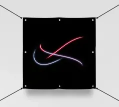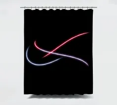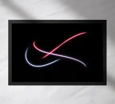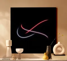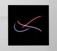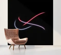 Scie luminose colorate in rosso, bianco e blu si intrecciano su uno sfondo scuro, dando vita a un coinvolgente disegno astratto che evoca energia e movimento nella notte.