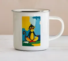 Scimmia che beve con un bicchiere di succo - divertente scena quotidiana