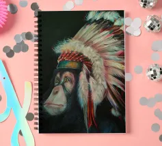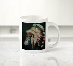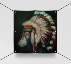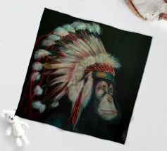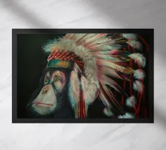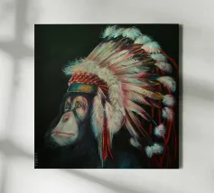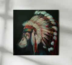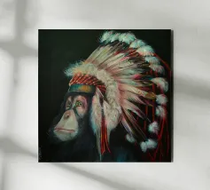 Questo scimpanzé dall'aspetto triste ha capito la minaccia che l'uomo rappresenta per le specie animali. Quest'opera d'arte è una satira dello scempio che stiamo facendo del nostro pianeta.