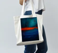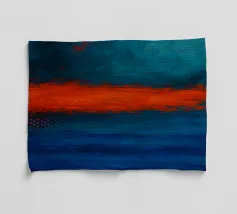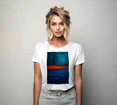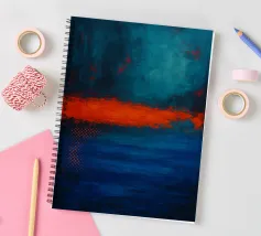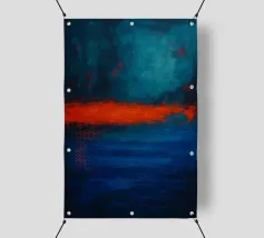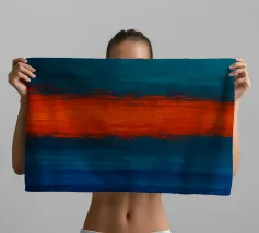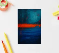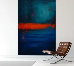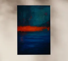 Un'opera d'arte moderna e astratta che gioca con le forti tonalità del blu, il turchese intenso e l'arancione ramato. I campi di colore orizzontali e i dettagli strutturati ricordano un orizzonte luminoso su acque tranquille. Espressivo e rilassante allo stesso tempo, è un pezzo forte per gli ambienti moderni.