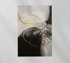 Il nero e l'oro esplodono da una base grigia e bianca come inchiostro fuso.
