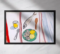 "Seaside Feast" è una natura morta giocosa e minimalista che dà vita ai sapori dell'oceano. Con un pesce fresco, ostriche e fette di limone in un ambiente semplice ma vivace, quest'opera d'arte celebra la cucina costiera in uno stile gioioso e astratto. Con le sue pennellate audaci ed espressive e la palette di colori chiari, l'opera evoca il fascino di un pasto in riva al mare, perfetto per qualsiasi cucina o zona pranzo che abbracci l'amore per il cibo e il mare. Progettato da BALIKA HOMES.