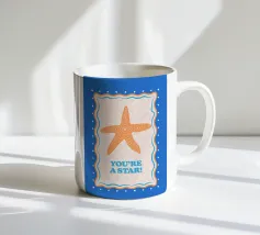 Stella marina arancione con cornice decorativa su sfondo blu cobalto. Con il testo Your A Star! Perfetto per dare alla vostra stanza un'atmosfera da spiaggia.