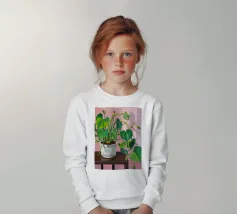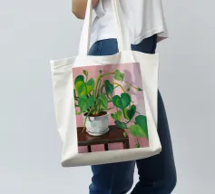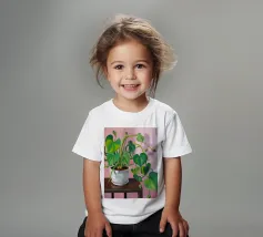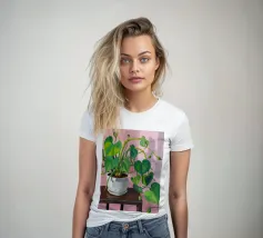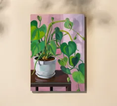Illustrazione di una rigogliosa pianta di pothos in un semplice vaso bianco. La composizione è pulita e minimalista e si concentra sulla bella forma e sulle foglie verdi e vibranti di questa popolare pianta d'appartamento.